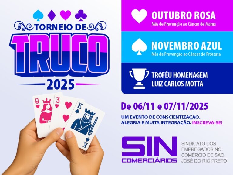 O Sincomerciários de São José do Rio Preto anuncia mais uma edição do Torneio de Truco 2025, um evento tradicional que promete